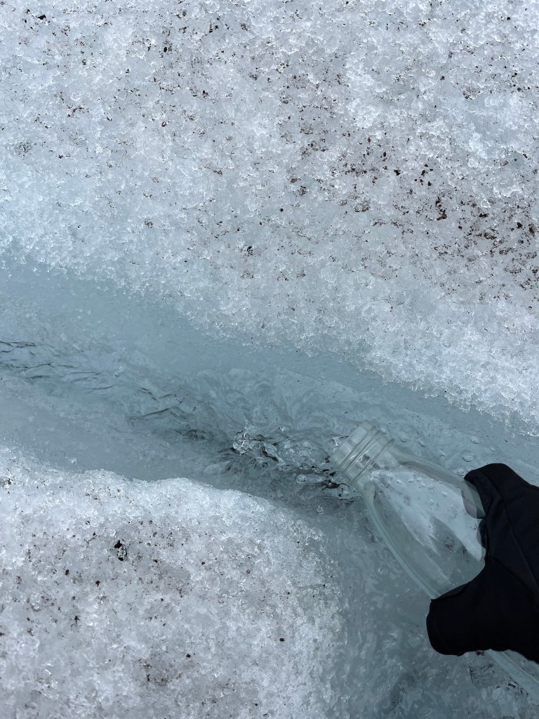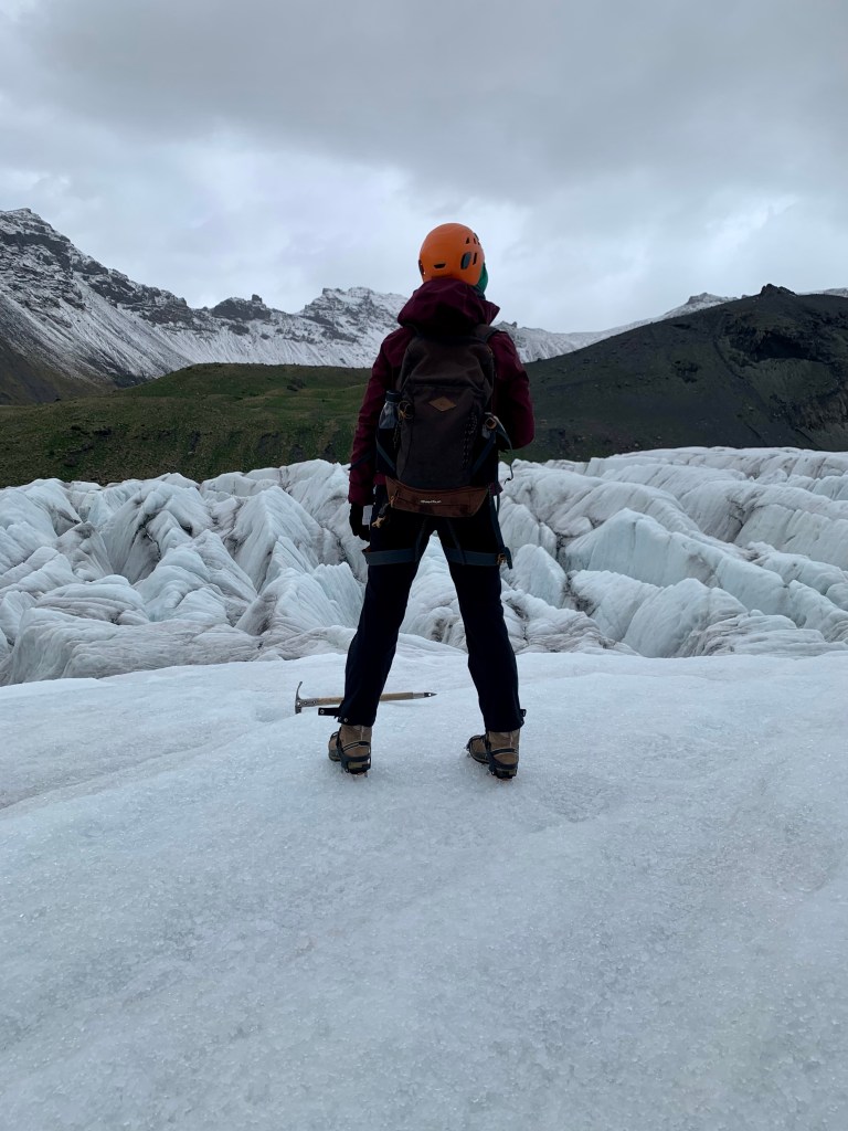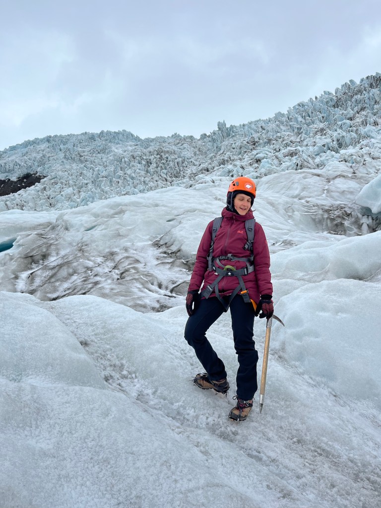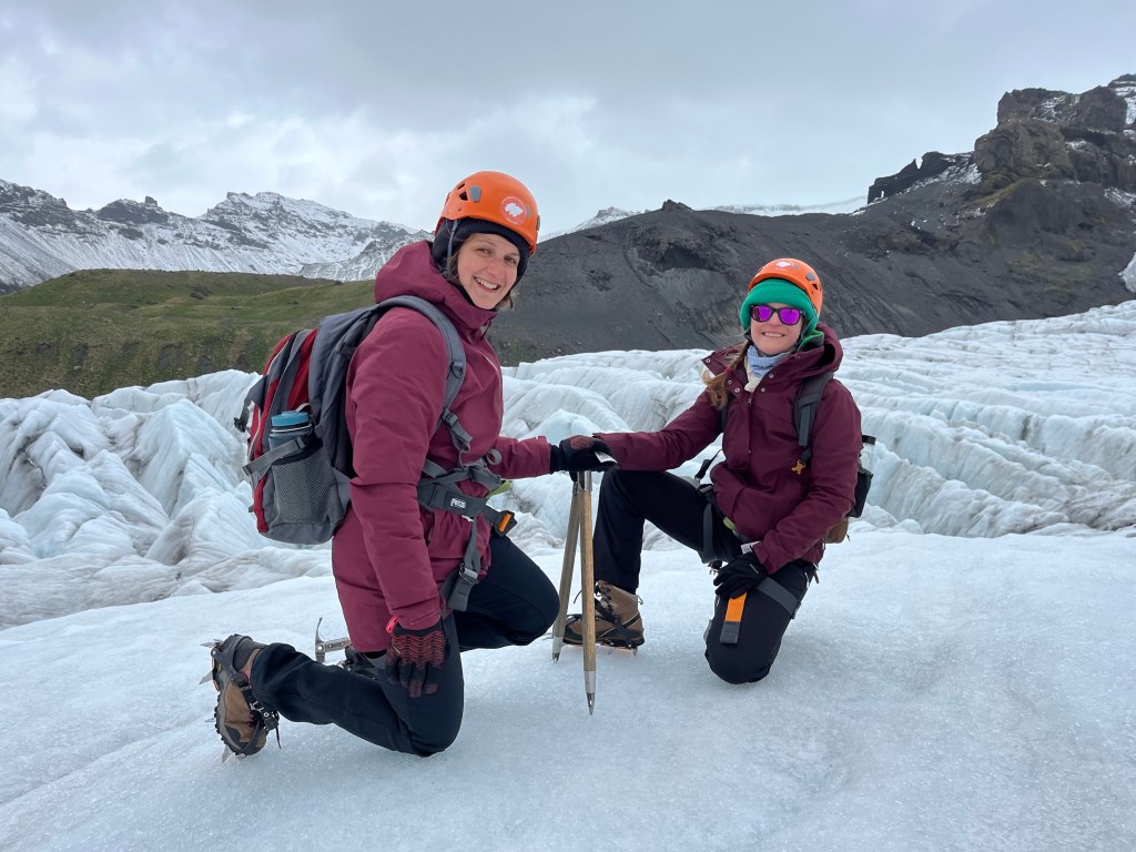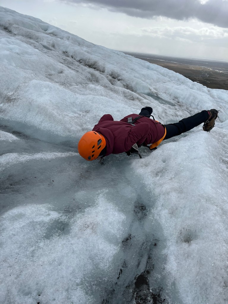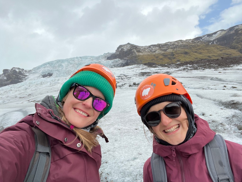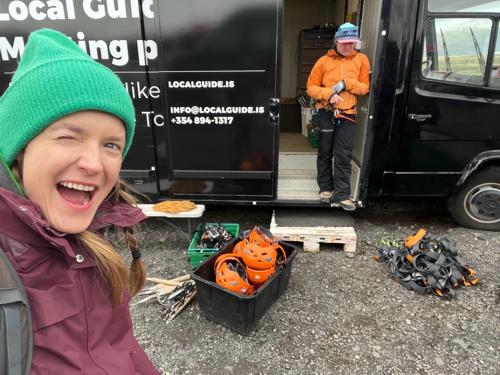 Po nurkowaniu, goracej rzece, glacier lagoon itp., przyszla pora na treking po lodowcu. Oszczedzajac sily na hardkorowy treking (ktory zaczynal sie o 13:30) caly ranek (bardzo odpowiedzialnie! – to nie bylo zadne lenistwo – !) przeznaczylysmy na regeneracje. Zwarte i gotowe stawilysmy sie na miejscu zbiorki zeby rozpoczac walke z zywiolem – lodowcem (obie), walke o zycie (ja)😁 Zaczelo sie pro – mierzenie rakow, uprzerzy, kaskow i przekazanie czekanow. Te ostatnie przewodniczka (Paulina z Polski – pozdrawiamy😍) nazywala „glacier lollipop” co powinno dac nam do myslenia. Po calych przygotowaniach – faktycznie poszlismy na lodowiec i bylo ekstra (obczajcie foty – podobno w 2200 roku tego lodowca juz nie bedzie), ale zeby to byl hardkor fizyczny to nie powiem😅 Za to faktycznie wlezlismy na sam jezor i pilismy wode z lodowca😍